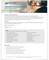 Great presenters need to show that they have something important to say by applying good communications skills and showing confidence. You will learn how to communicate the importance of your message by keeping to a few key points, and then using a dynamic presentation with appropriate body language, eye contact, and dress, to make your ideas stick with your audience.
