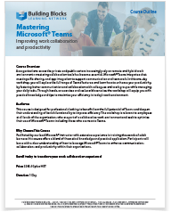 This course is designed for professionals looking to benefit from the full potential of Teams and deepen their understanding of its rich functionality to improve efficiency. The workshop is relevant to employees at all levels of the organization, who are part of a collaborative work environment and seek to optimize their use of Microsoft® Teams, including those who are new to Teams.